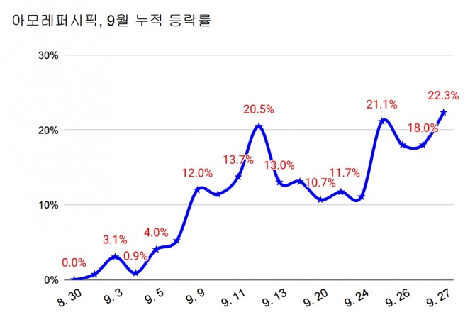 이에 아모레퍼시픽 주가는 이달 들어 22.3% 급등했으며, 한국콜마와 코스맥스도 각각 16.7%, 18.7% 뛰었다.