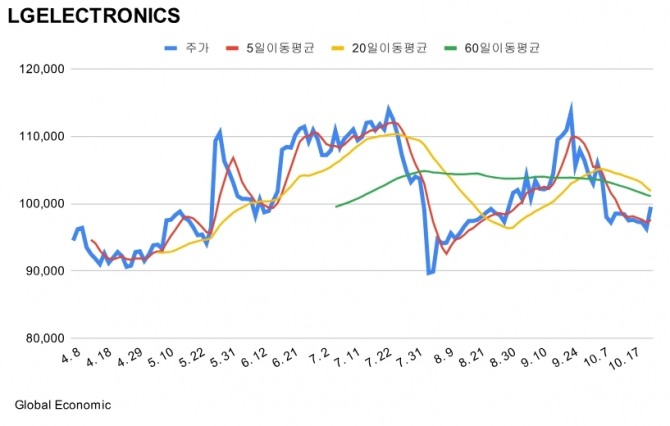 이미지 확대보기이날 LG전자는 전일 종 대비 3200원(3.32%) 오른 9만9500원에 거래를 마쳤다.