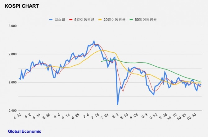 이미지 확대보기이날 한국거래소에 따르면 9시4분 현재 코스피는 전 거래일 보다 11.40포인트(0.44%) 오른 2588.28을 기록하고 있다.
