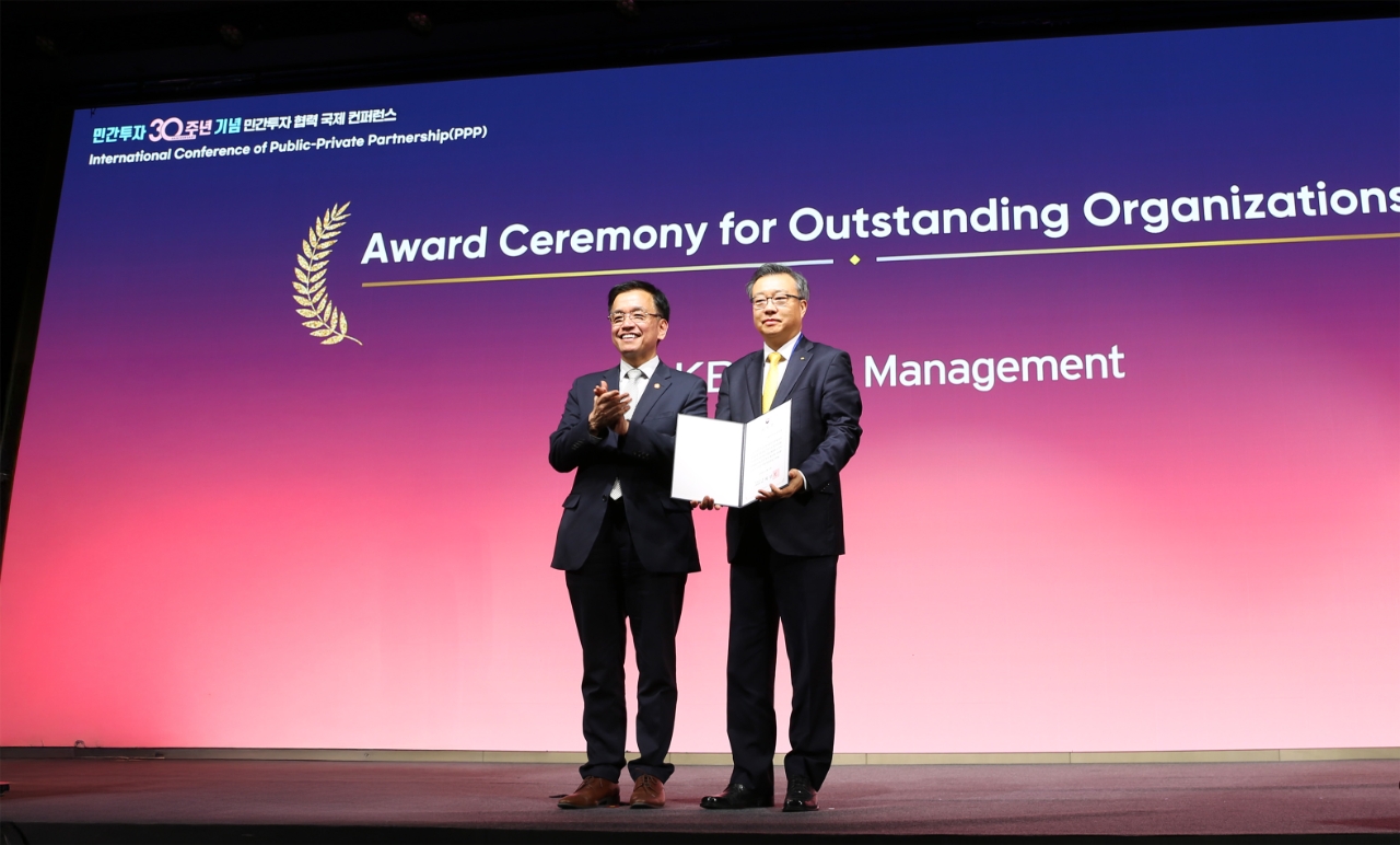 이미지 확대보기KB자산운용은 지난 12일 서울 여의도 페어몬트호텔에서 기획재정부와 한국개발연구원(KDI) 주관으로 열린 ‘민간투자 30주년 기념 민간투자 협력 국제 컨퍼런스’에서 최상목 부총리 겸 기획재정부 장관으로부터 표창을 받았다고 13일 밝혔다.
