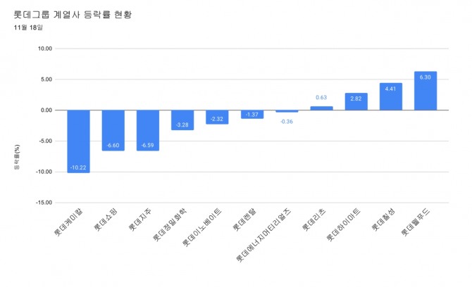 이미지 확대보기이날 롯데 계열사들이 줄줄이 신저가를 기록한 것은 롯데그룹이 유동성 위기를 겪고 있다는 풍문이 증권가와 온라인 커뮤니티에서 퍼진 영향으로 보인다.