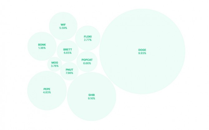 도지코인의 열풍과 더불어 또 다른 대표 밈코인인 시바이누(SHIB), 큰 눈의 초록색 개구리 캐릭터 페페를 모티브로 발행한 페페(PEPE), 그리고 플로키(FLOKI), 봉크(BONK), 도그위햇(WIF) 등 대표적인 밈코인이 줄줄이 급등해 암호화폐 시장의 다크호스로 떠올랐다.