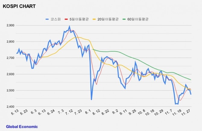 이미지 확대보기이날 한국거래소에 따르면 9시16분 현재 코스피는 전 거래일 보다 30.06포인트(1.20%) 내린 2474.61 기록하고 있다.