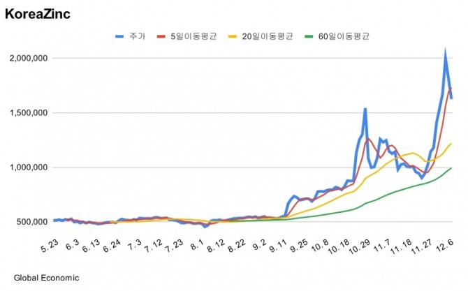 앞서 고려아연은 경영권 분쟁의 결론이 날 임시 주총을 앞두고 지난 6일까지 연일 상승세를 보였다.