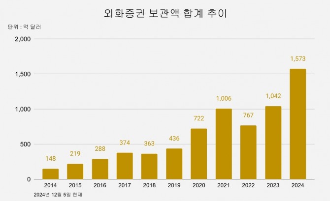 한국예탁결제원이 제공하는 데이터상으로 2011년 이후 연간 기준 최고치다.