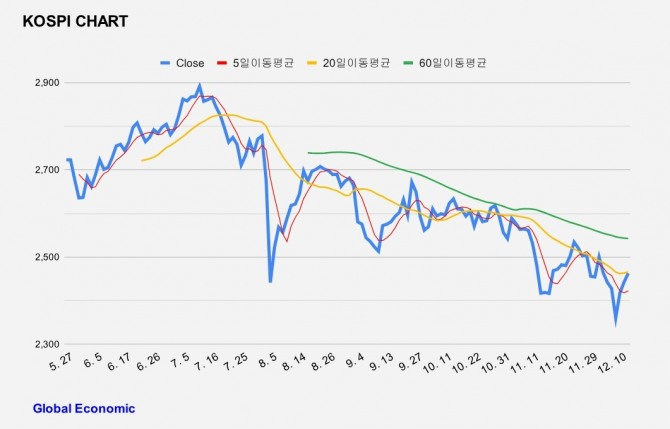 이미지 확대보기12일 한국거래소에 따르면 9시15분 현재 코스피는 전 거래일 보다 0.84%(20.41포인트) 오른 2462.92를 기록하고 있다.