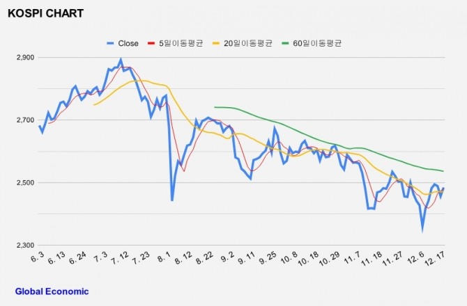 이미지 확대보기이날 한국거래소에 따르면 코스피지수는 전 거래일 보다 1.12%(27.62포인트) 상승한 2484.43에 거래를 마감했다.