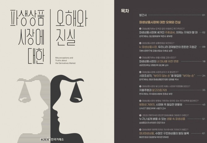 이미지 확대보기해당 책자에서는 투자자들이 파생상품시장에 대해 오해할 수 있는 8가지 사항에 대해 학계·업계 내 시장 전문가들이 알기 쉽게 설명하고 있다.