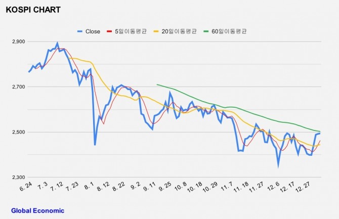 이미지 확대보기이날 한국거래소에 따르면, 오전 9시 11분 현재 코스피는 전 거래일 보다 0.09%(2.28포인트) 오른 2494.38을 기록하고 있다.