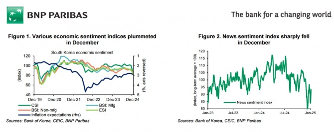 이미지 확대보기BNP파리바는 10일 윤지호 선임 이코노미스트의 한국은행 금융통화위원회에 대한 보고서에서 "한국은행은 1월 16일 예정된 금융통화위원회에서 성장을 지원하기 위해 25bp 금리 인하를 단행할 가능성이 있으며, 이는 경제성장과 금융안정 간의 상충관계를 고려한 긴밀한 결정이 될 것으로 보인다"고 설명했다.