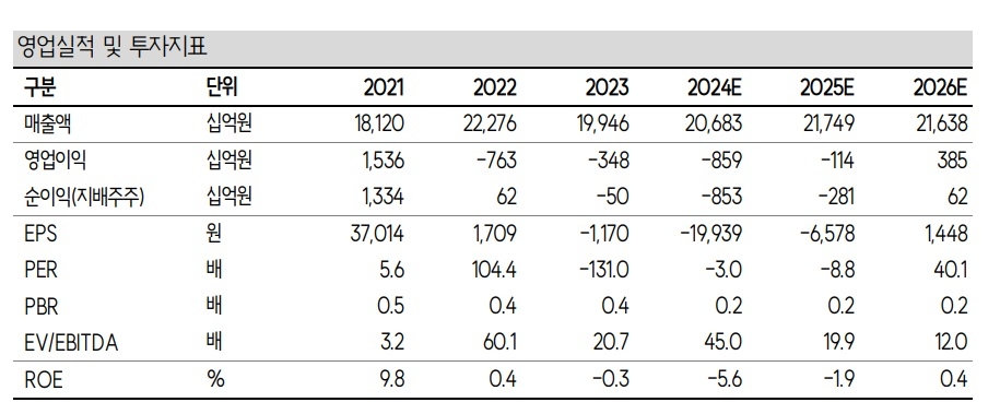 지난 4분기 실적은 매출액이 전년 동기 대비 0.9% 감소한 5조 1000억 원, 영업적자 1987억 원으로 적자를 지속했을 것으로 분석했다.