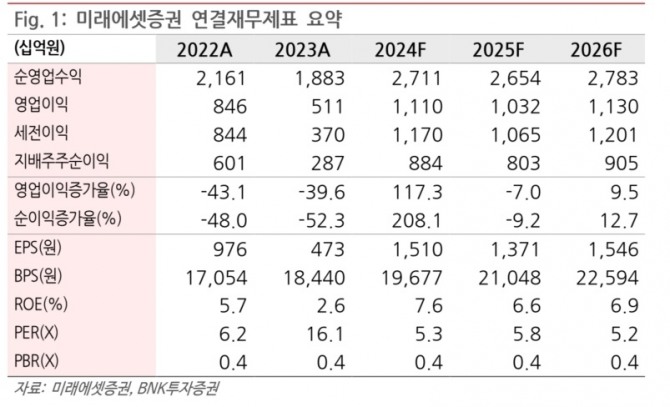 또 "일평균거래대금 감소에도 해외주식 약정 증가에 따른 수수료율 상승 지속되면서 수탁수수료가 큰 폭으로 증가한 것에 기인한다"면서 "다만, 주식시장 부진에 따른 인수주선 및 수익증권 수수료는 소폭 감소하는 가운데 리스크관리 강화로 부동산PF 신규투자는 부진함에 따라 기업금융도 축소되면서 기타수수료는 감소할 전망"이라고 덧붙였다.