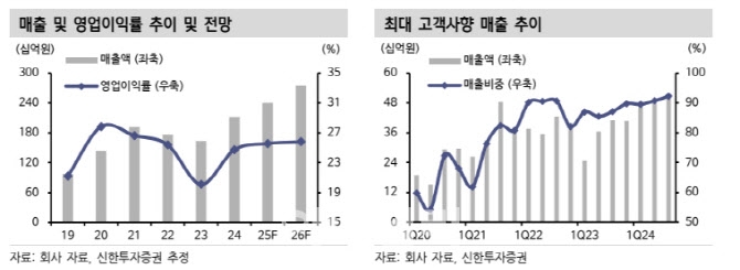 2025년 실적은 매출액 2400억원으로 전년 대비 13% 증가하고 영업이익은 614억원으로 같은 기간 16.9% 늘어날 것이라고 전망했다.