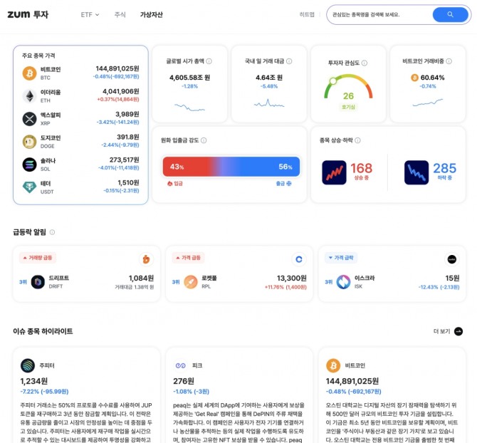 딥서치는 이번 서비스를 통해 국내외 상장 기업, 비상장 기업, ETF에서 가상자산까지 투자정보 제공 범위를 확대했다. 특히 가상자산 데이터 전문 기업 보난자랩과 협력해 보다 폭넓고 깊이 있는 데이터를 확보했다. 줌인터넷 역시 딥서치와의 협업을 통해 기존 투자 서비스 라인업을 가상자산까지 확대하고, AI 기술과 검색 역량을 결합해 보다 많은 사용자에게 유의미한 정보를 제공할 계획이다.
