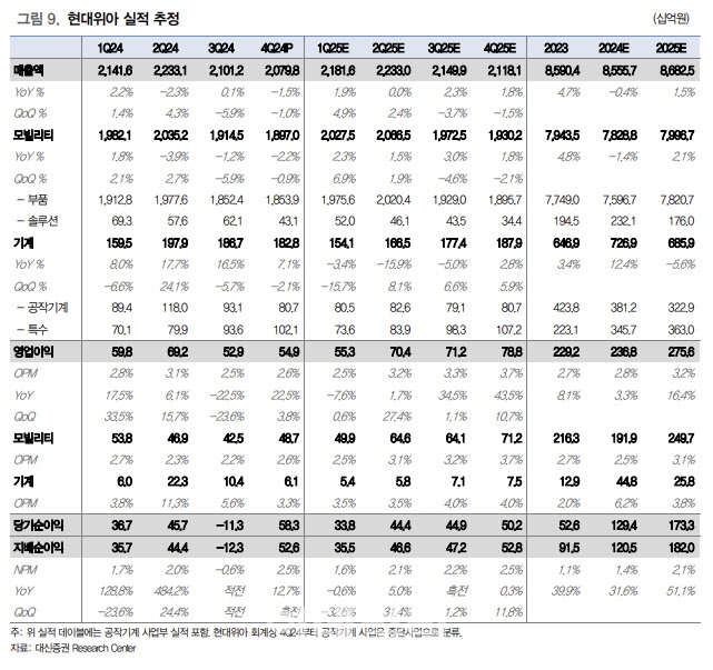 김 연구원은 "종전 이후 현대차 러시아 공장의 바이백이 현실화하면 현대위아는 연간 4000억원 이상의 매출고를 올릴 것"며 "외형 성장 제한과 트럼프 관세 부과 이슈로 업종 내 부진이 지속하고 있지만 기계사업 매각, 내연기관 열관리 모듈 수주, 러우 전쟁 종전, 2026년 미국 공장 하이브리드차(HEV) 엔진 생산 예정 등 반등 기회를 모색해 2026년 성장 재개에 따른 주가 반등 및 회복이 예상된다"고 분석했다.