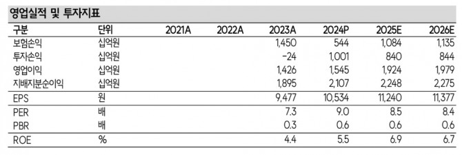 이미지 확대보기설용진 SK증권 연구원은 "유배당 연금 관련 손실은 향후에도 4분기마다 가정 조정에 따라 약 2000억~3000억원의 손실계약비용으로 반영되며 계절적인 실적 부진 요인으로 작용할 전망이나 연간 실적은 견조한 흐름을 전망한다"고 했다.