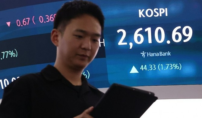 이미지 확대보기이날 한국거래소에 따르면 코스피지수는 전 거래일 보다 1.73%(44.33포인트) 오른 2610.69에 거래를 마감했다.