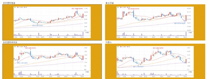 오리엔트바이오도 전일 보다 363원(29.95%) 오른 1575원을 기록해 상한가로 마감했다. 이밖에 동신건설(30.00%), 일성건설(29.86%), 디젠스(29.97%), 이스타코(29.98%) 등도 줄줄이 상한가를 기록했다.