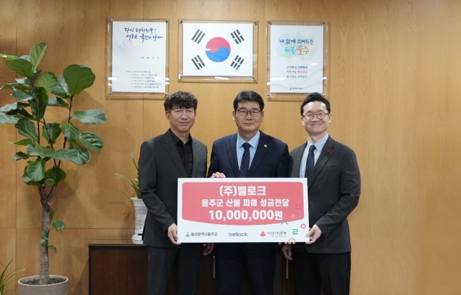 전달식에서 벨로크는 최근 발생한 대규모 산불로 인해 피해 주민들에게 실질적인 도움이 될 수 있도록 1000만원의 기부금을 울주군청에 전달했다.