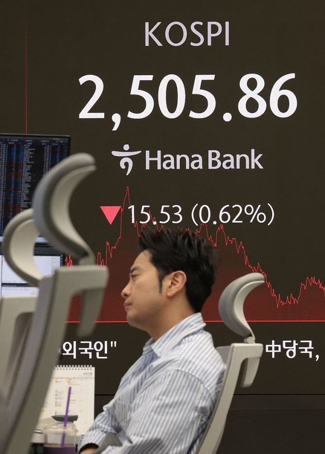 이날 한국거래소에 따르면 코스피지수는 전 거래일 보다 0.62%(15.53포인트) 내린 2505.86에 거래를 마감했다. 지수는 전 거래일 보다 0.17%(4.23포인트) 높은 2525.62로 출발해 하락 전환했다. 장중 최고가는 2532.15, 최저가는 2499.83이었다.