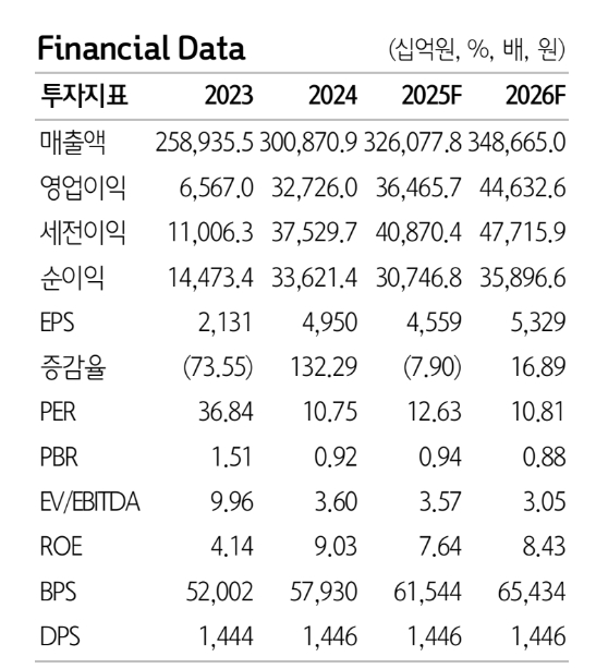 1분기 실적 프리뷰 또는 리뷰를 통해 컨센서스는 상향될 것으로 예상되며, 전년대비 증익으로 이익의 방향성이 바뀌게 된다. 김 연구원은 "2025년 영업이익의 상향으로 인해 주가 역시 상승할 것"이라면서 “메모리 업황이 호황으로 돌아서게 된다면, 밸류에이션 또한 동반 상향이 가능하기에 현재 PBR 0.9배는 부담스럽지 않은 주가 수준”이라고 진단했다.