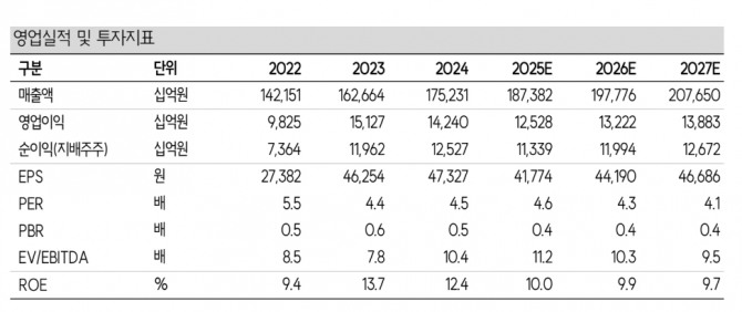 2025년 실적은 매출액이 전년 대비 6.9% 증가한 187조 4000억원,영업이익은 12% 감소한 12조 5000억원으로 관세와 관련한 비용 증가를 2조 4000억원 반영해 영업이익 전망치를 -13.7% 하향 조정했다.