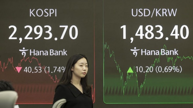 이미지 확대보기이날 한국거래소에 따르면 코스피지수는 전 거래일 보다 1.74%(40.53포인트) 내린 2293.70에 거래를 마감했다. 코스피가 종가기준 2300선 아래로 내래온 것은 2023년 10월 31일(2277.99) 이후 1년 5개월 만이다.