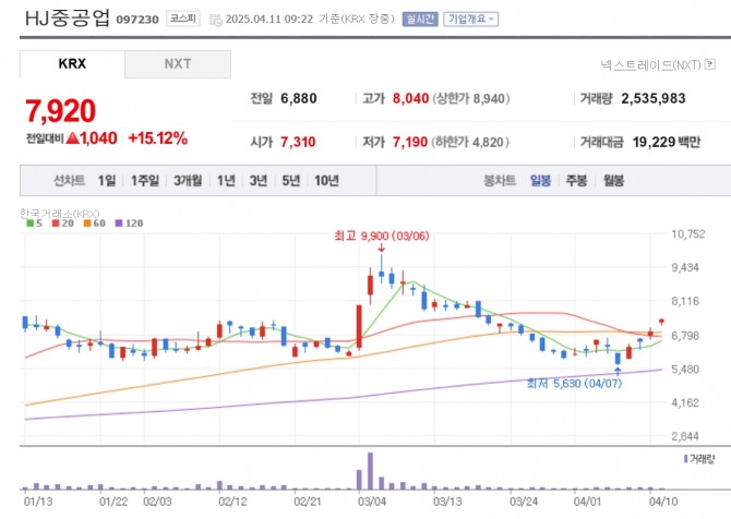 이미지 확대보기이날 한국거래소에 따르면 오전 9시 22분 HJ중공업은 전 거래일 대비 15.12% 오른 7920원을 기록하고 있다. 이외 HD현대중공업 3.55%, HD현대미포 2.76%, 한화오션 1.92%, HD한국조선해 1.88% 등 조선주가 줄줄이 오름세다.