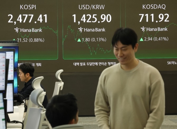 이미지 확대보기이날 한국거래소에 따르면 코스피지수는 전 거래일 보다 0.88%(21.52포인트) 오른 2477.41에 거래를 마감했다.