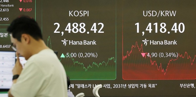 이미지 확대보기이날 한국거래소에 따르면 코스피지수는 전 거래일 보다 0.20%(5.00포인트) 오른 2488.42에 거래를 마감했다.