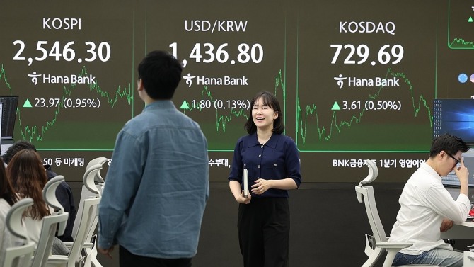 이미지 확대보기이날 한국거래소에 따르면 코스피지수는 전 거래일 보다 0.95%(23.97포인트) 오른 2546.30에 거래를 마감했다.