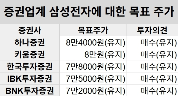 이미지 확대보기1일 하나증권은 보고서를 통해 삼성전자에 대해 "당초 예상했던 것보다 메모리 가격 상승폭을 하향 조정하지만, 수급 밸런스의 조기 안정화와 그에 따른 메모리 중심의 실적 우상향 기조를 유지"한다며 목표주가와 투자의견을 기존과 같은 8만4000원, 매수(BUY)를 각각 유지했다.