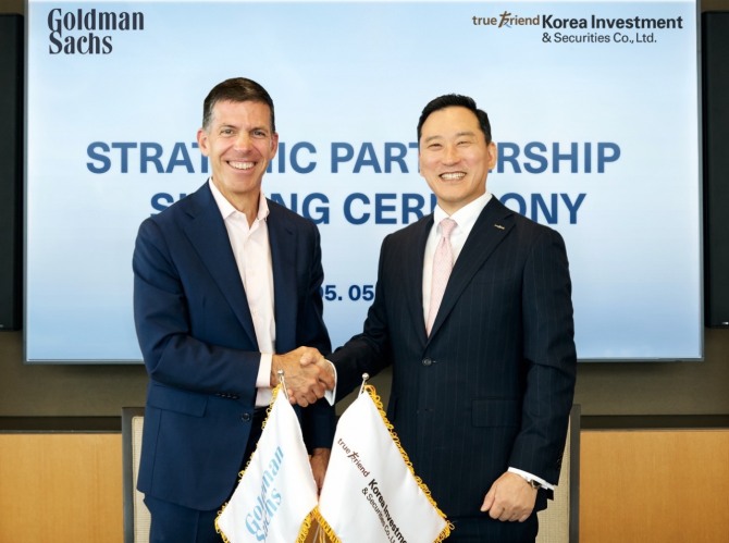 이번 양해각서에는 △골드만삭스자산운용 펀드 소싱 △골드만삭스 마켓 업데이트 및 자료 공유 △골드만삭스와 한국투자증권 직원간의 지식 교류 등 다양한 분야에 걸친 전략적 협력이 포함됐다. 앞으로 한국투자증권은 골드만삭스자산운용 펀드를 국내에 판매할 수 있는 권한을 확보하고, 국내 고객에게 전통적인 글로벌 금융상품 및 대체 금융상품을 제공할 수 있게 된다. 또, 한국투자증권은 골드만삭스자산운용 투자전략그룹의 시장전망자료를 활용한 리서치자료를 투자자에게 제공해 다양한 글로벌 인사이트를 제공할 예정이다.