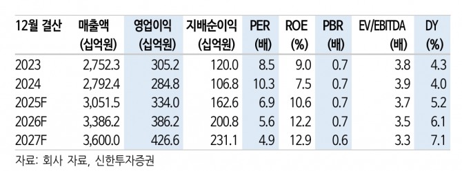 주주환원정책(순이익의 10% 자사주매입 소각, 30% 배당) 감안 시 25, 26년 주주환원율은 각각 6.5%, 7.9%에 달한다. 최 연구원은 "사모펀드로 대주주 변경 이후 주주환원 스탠스는 현재보다 후퇴할 가능성이 낮아, 주주환원 관점의 락바텀 확보한 주가 수준으로 판단된다"고 마무리 했다.
