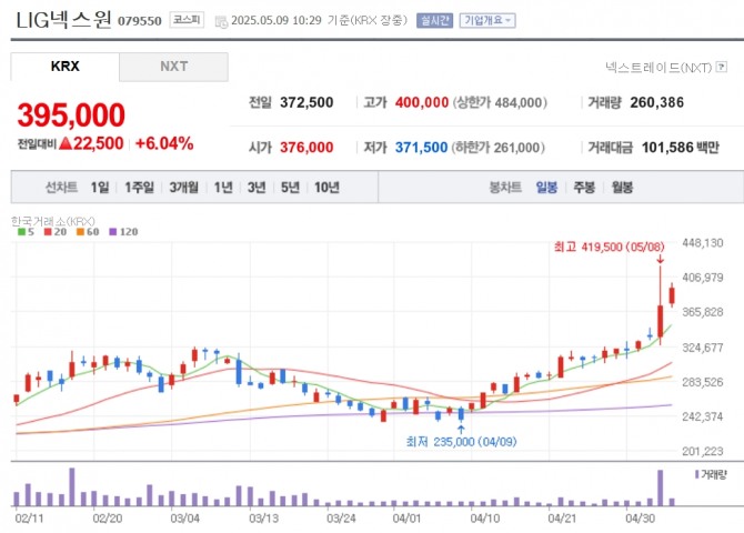 이미지 확대보기LIG넥스원이 1분기 호실적에 강세를 보이고 있다.