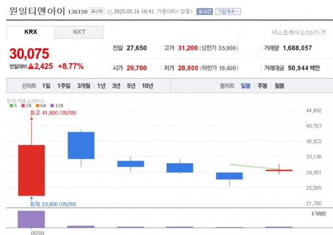 이미지 확대보기16일 한국거래소에 따르면 LNG 고압연소식기화기(SCV)·재액화기 및 수소저장합금을 생산·공급하는 원일티엔아이가 전 거래일 대비 8.77% 오른 3만075에 거래되고 있다.