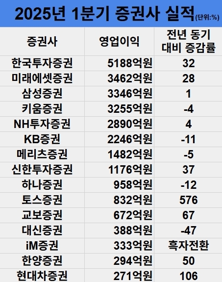 이미지 확대보기18일 증권업계에 따르면 국내 증권사 가운데 한국투자증권, 미래에셋증권, 토스증권, 신한투자증권, 현대차증권, iM증권 등이 올해 1분기 실적이 크게 향상됐다.