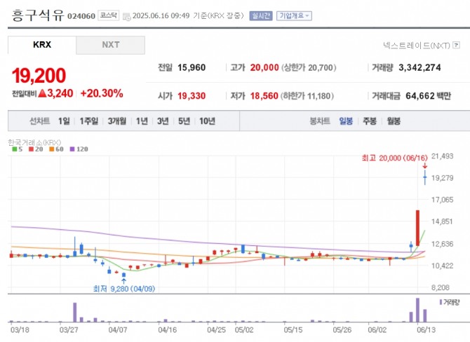 이미지 확대보기16일 한국거래소에 따르면 이날 오전 9시49분 현재 흥구석유는 전거래일 대비 20.30% 오른 1만 9200원에 거래 중이다. 같은 시각 중앙에너비스 13.76%, SK가스 4.29%, E1 1.70% 등 액화석유가스(LPG) 관련주가 동반 강세를 보이고 있다.