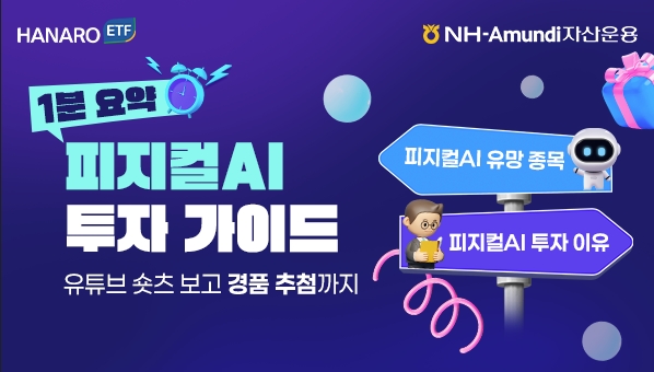 한편, NH아문디자산운용은 차세대 성장 동력으로 떠오르고 있는 피지컬AI에 대한 투자 이해를 돕기 위해 ‘피지컬AI 투자 가이드북’을 배포하고 있다. 해당 가이드북과 함께 제공되는 숏폼 콘텐츠 시청 인증 및 퀴즈 참여자를 대상으로 이벤트도 진행 중이다.