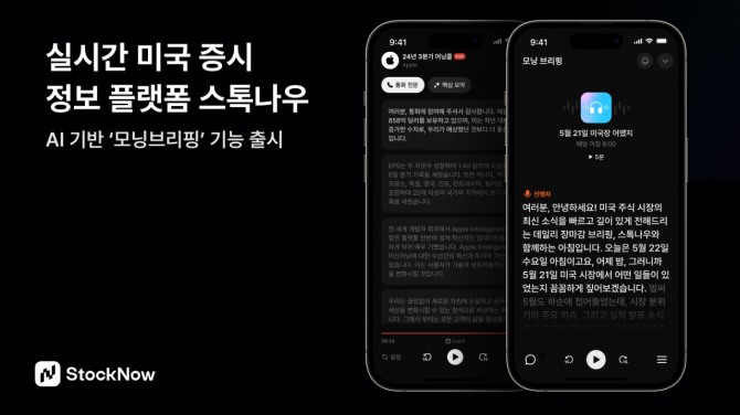 지난해 10월 출시된 스톡나우는 어닝콜, 실적 발표 등 미국 증시 주요 이벤트와 뉴스를 실시간 전달하는 AI 기반 서비스다. 국내 최초로 어닝콜 실시간 통·번역 기능을 선보였으며 ▲관심 종목별 이벤트 알림 패널 ▲한국 시간 기준 주요 일정 확인 ▲실적 발표와 어닝콜 동시 확인이 주요 특징이다.