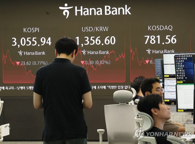 이미지 확대보기이날 한국거래소에 따르면 코스피는 전 거래일 보다 0.77%(23.62포인트) 내린 3055.94에 거래를 마감했다. 이날 지수는 전 거래일 대비 하락 출발한 후 반등에 성공하면서 3090선까지 오르기도 했다. 하지만 외국인의 순매도가 강화되면서 지수는 하락폭을 좁히지 못했다.