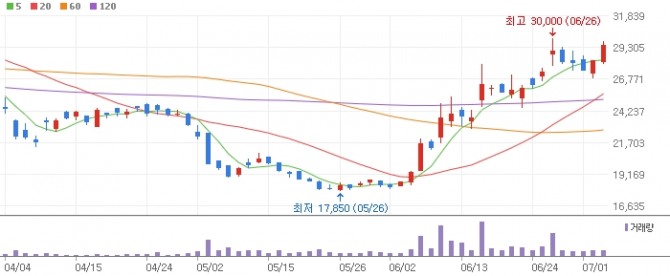 특히 최근 코스피 랠리 분위기 속 DDR4 물량 증가 기대감이 부각되면서 해성디에스의 주가가 최근 1개월간 56% 가량 가파르게 상승했다고 밝혔다.
