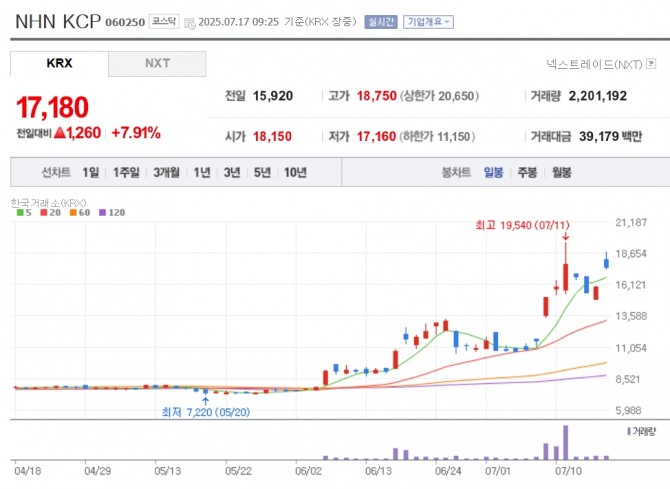 이미지 확대보기17일 한국거래소에 따르면 이날 오전 9시 25분 현재 NHN KCP는 전거래일 대비 7.91% 오른 1만 7180원에 거래 중이다. 한국정보인증(3.62%), 미투온(2.83%), 라온시큐어(2.80%), 헥토파이낸셜(2.61%), 아톤(2.34%) 등 관련주들이 함께 상승하고 있다.