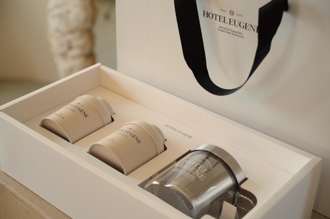 디자인회사 '호호호'와 협업하여 제작한 호텔유진 굿즈는 호텔유진 브랜드 홈페이지, 인테리어 전문 쇼핑몰 등에서 구매할 수 있다.