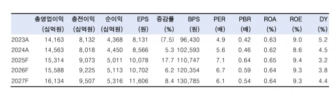 백 연구원은 “신한지주의 주주환원율은 올해 47.0%, 내년 50.2%로 당초 계획을 조기 달성할 것”이라며 “수익성 턴어라운드와 주주환원 확대 스토리를 감안해 은행 업종 톱픽으로 유지한다”고 진단했다.