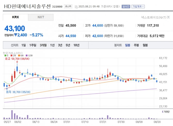 이미지 확대보기HD현대에너지솔루션 주가 추이. 자료=네이버페이 증권