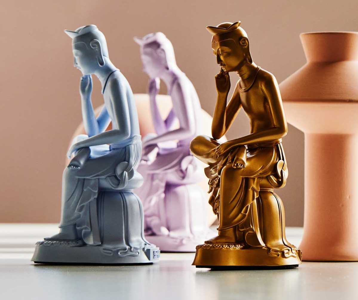 반가사유상은 한쪽 다리를 무릎 위에 올린 반가좌 자세로 앉아, 손가락으로 뺨을 가볍게 괸 채 깊은 사색에 잠긴 모습을 형상화한 불상이다. 인간 존재의 고뇌와 깨달음을 향한 내적 성찰을 상징하며, 평온과 균형의 미학을 담고 있다.