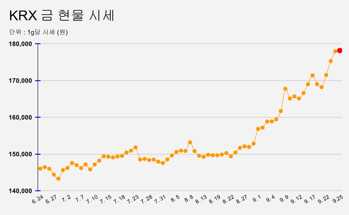 이날 금값은 시가 177,770원으로 출발해 장중 한때 178,270원까지 오르며 전날 기록한 연중 최고가와 같은 수준까지 올랐다. 저가는 176,850원을 기록했다.