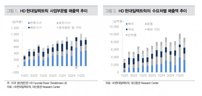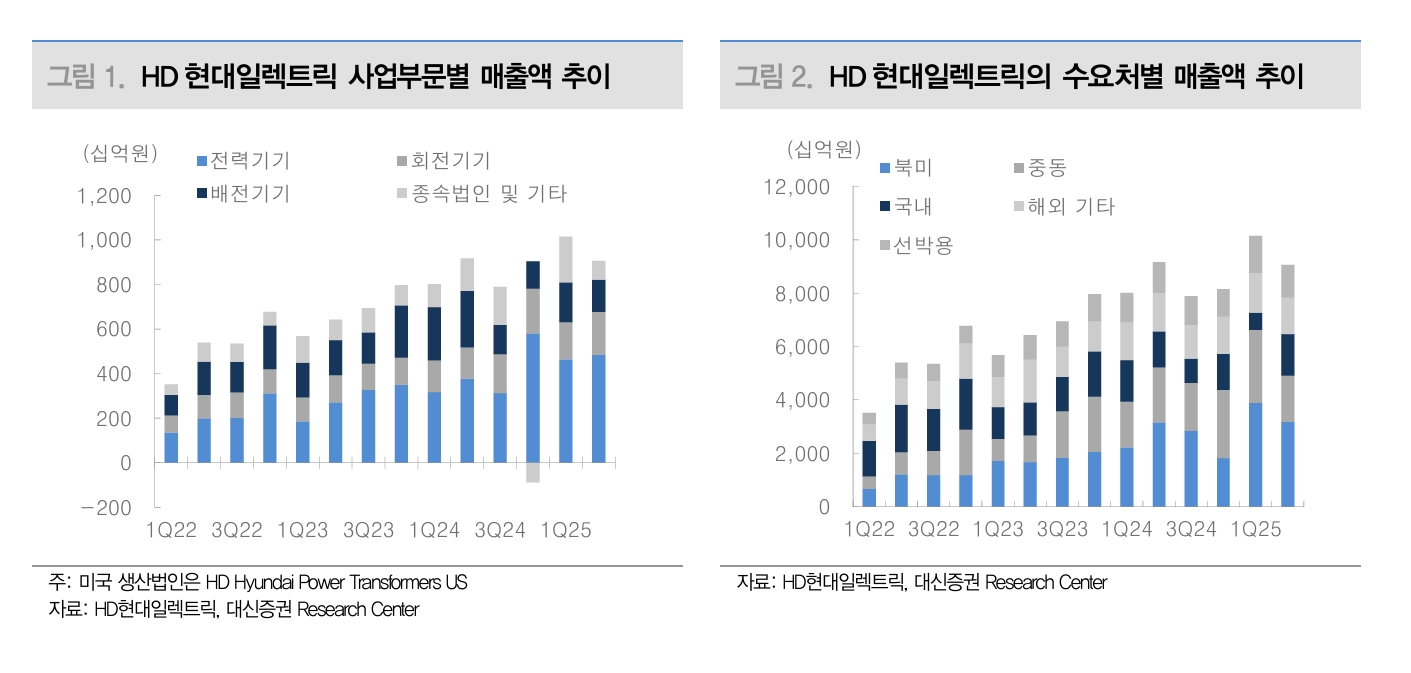 이어 “3Q25 미국 관세 반영에도 여전히 고가의 미국향 매출비중 확대, 미국 이외 지역에서도 전력기기 가격 상승, 미국 판매법인의 빠른 재고 소진 등으로 수익성이 개선될 전망”이라며 “매출에는 보험비, 부가가치세 등이 추가돼 반영되지만, 세관 기준은 이를 제외한 가격이다. 실제 관세가 적용되는 제품가격은 매출 대비 85% 내외가 될 것으로 추정한다”고 부연했다.