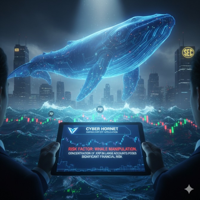 '사이버 호넷 스탠더드앤드푸어스(S&P)500/XRP ETF' 관련 문서는 이러한 대규모 계좌의 거래가 자산 가격을 급격히 변동시키고 시장 불안정성을 초래할 수 있다고 경고했다.